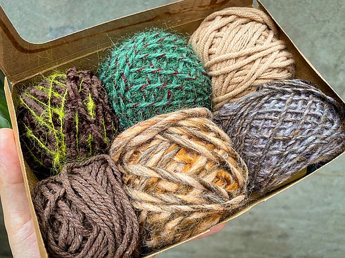 宛如雨後大地蘊含的新生氣息,這組毛線禮盒集結六款別具風情的素材:金絨混馬海(咖啡+綠)、松鼠紗(綠)、單色棉線(卡其)、棉麻繩(咖啡)、羊毛混線(棕黃)、特殊漸層藍線,讓你彷彿置身雨林深處,感受大地的溫柔擁抱。