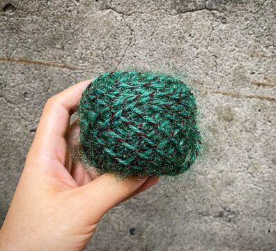 金絲絨混馬海毛(咖啡+綠)、松鼠紗(綠色)、單色棉線(卡其)、