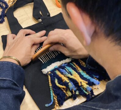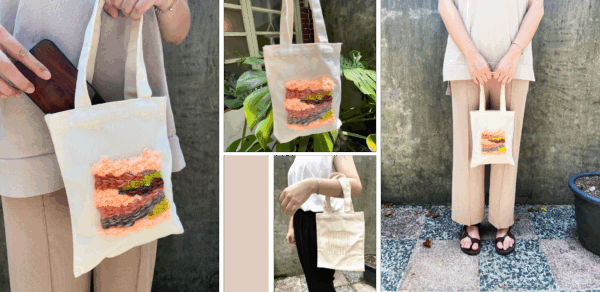將傳統梭織工藝融入日常,搭配絲線、毛絨、緞帶等多樣線材,自由創作屬於你的帆布包。素材可來自大自然,或透過二手衣物再利用,讓布料重生,在環保與美感中編織出獨一無二的手作作品。